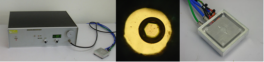 納升滲透壓儀及其頭部(左/中), 單冰晶在冰活性蛋白中生長并在納升滲透壓儀上成像(右)。